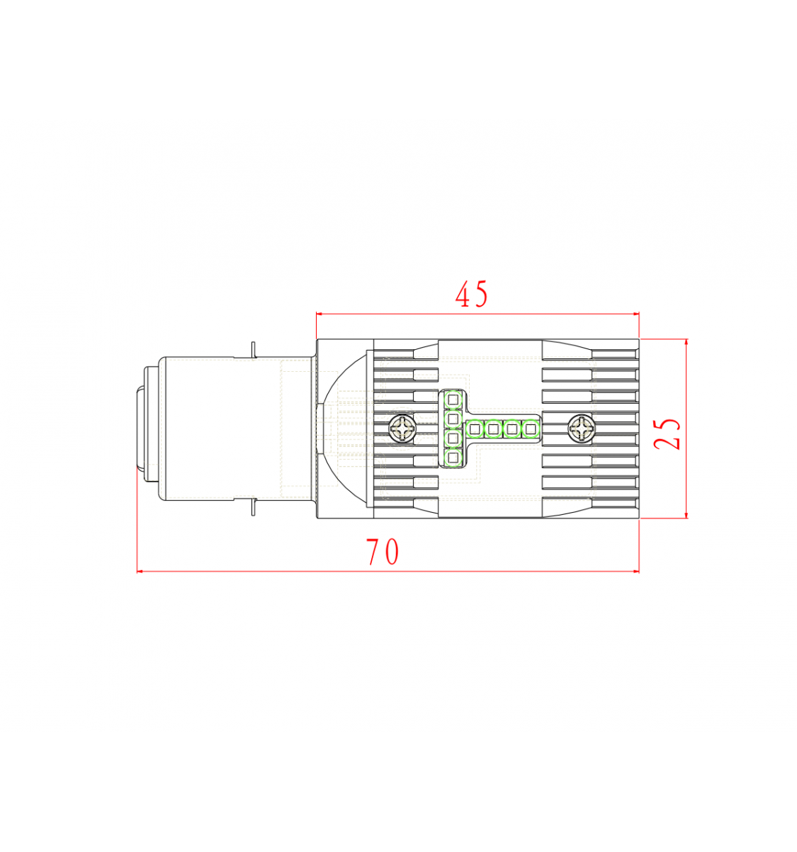 Højt lys: Ved 12V er strømstyrken 0,6A. Dvs. at effekten (forbrug) er 7,2W.