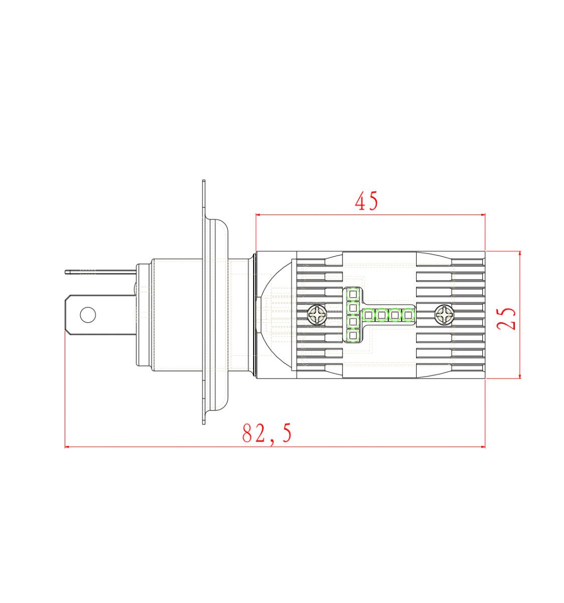 Lavt lys: Ved 12V er strømstyrken 0,4A. Dvs. at effekten (forbrug) er 4,8W.